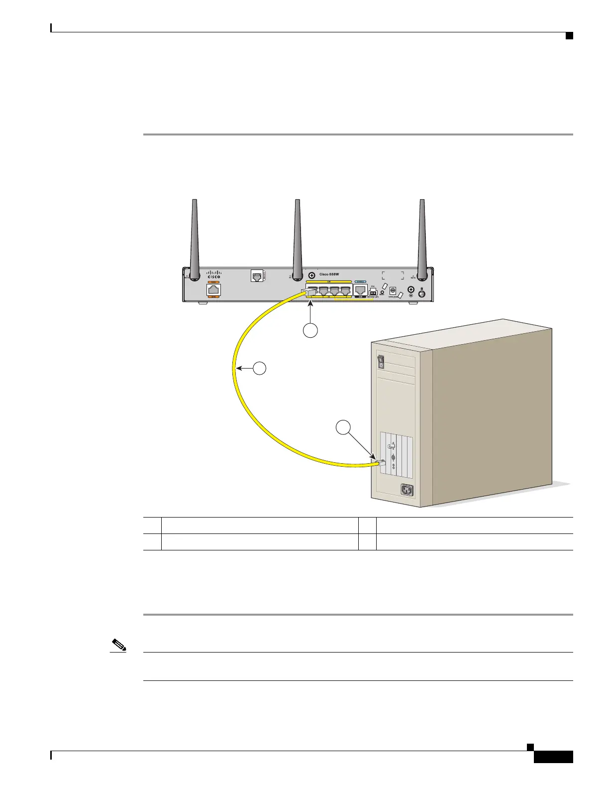 1 Yellow Ethernet cable supplied with the router 3 RJ-45 port on the network interface card