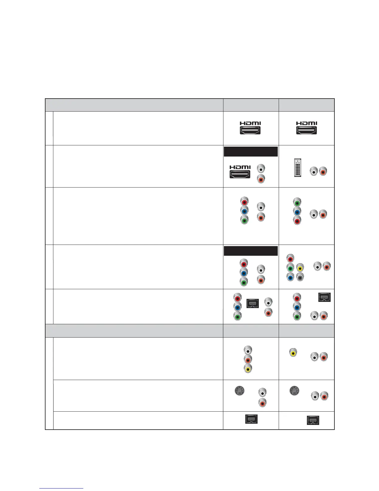 Required Connections to an HDTV (use one)