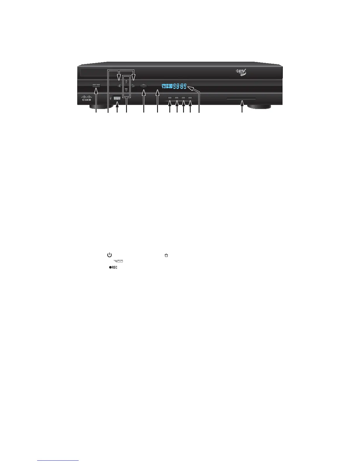 1 Power Turns the set-top on and off