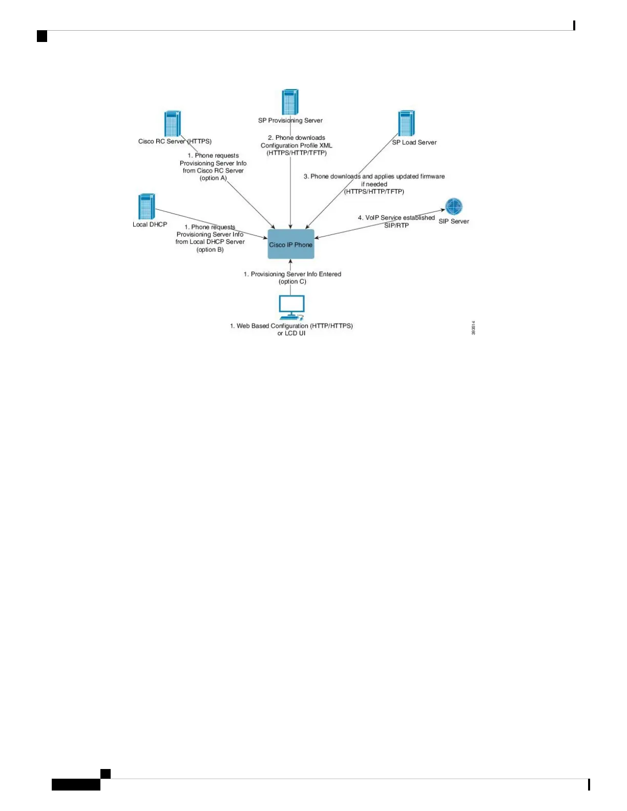 3. The phone downloads and applies the updated firmware, if needed, using HTTPS, HTTP, or TFTP.