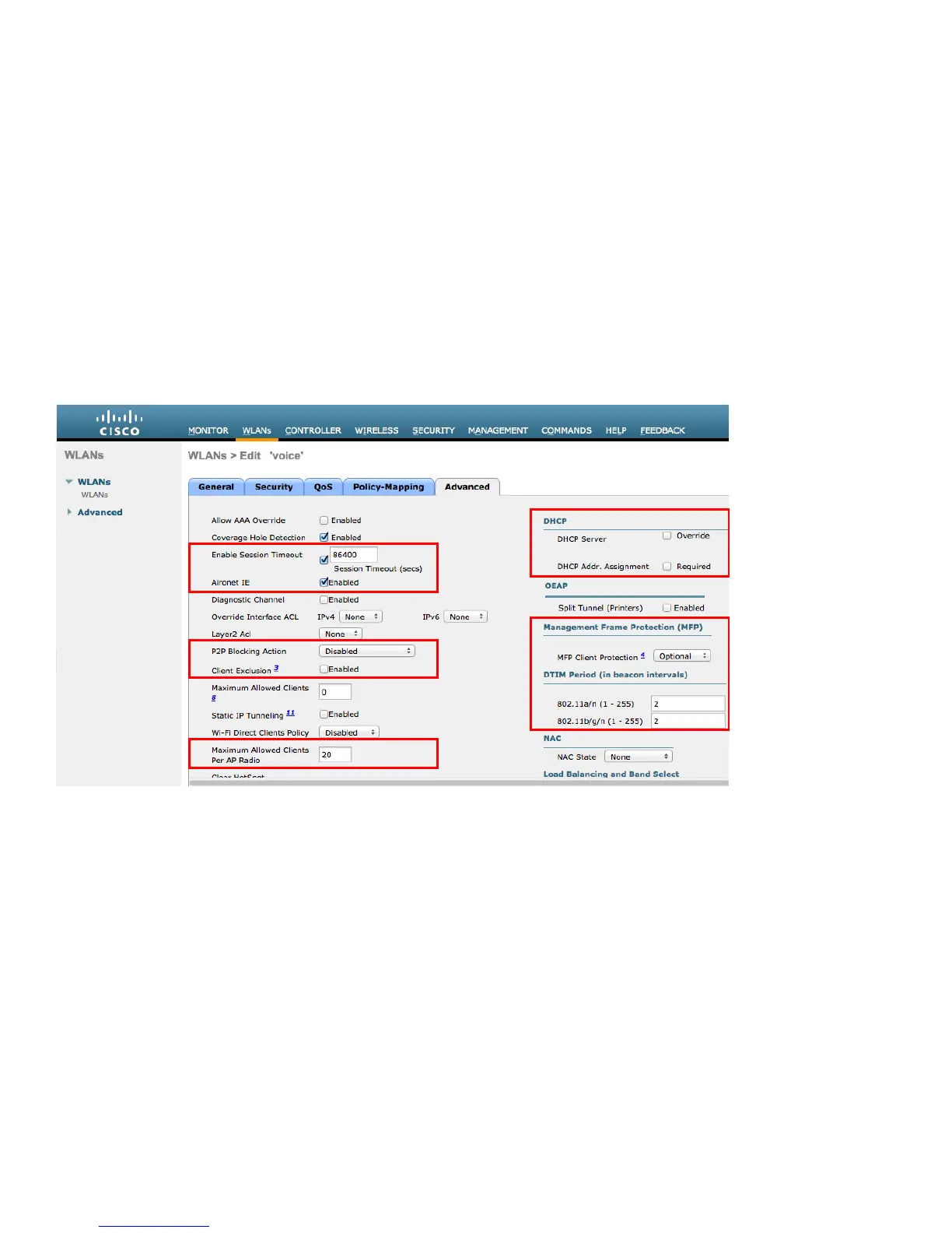 It is recommended to set Re-anchor Roamed Voice Clients to disabled as this can cause brief interruptions with wireless LAN
