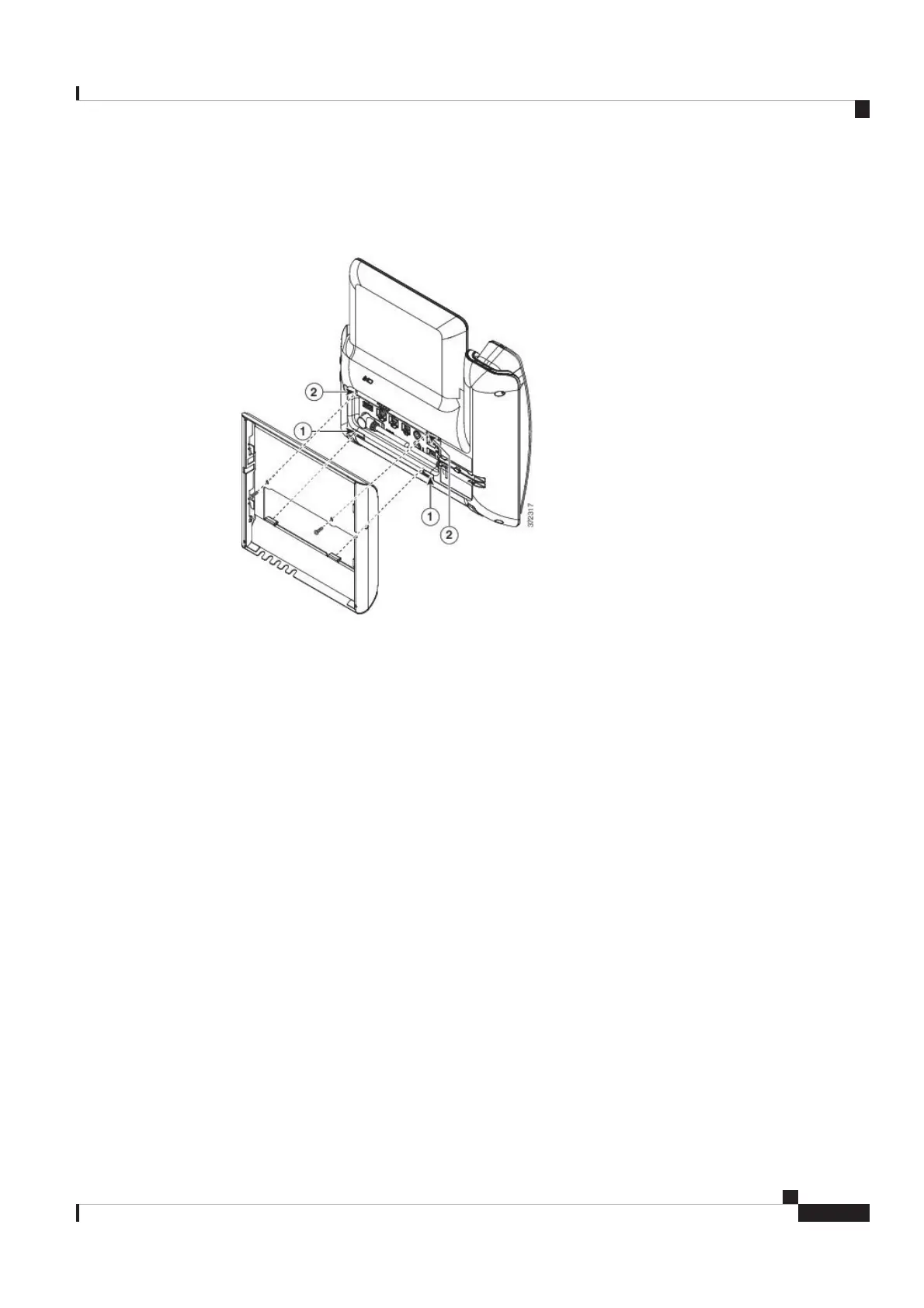 The following figure shows how the bracket attaches to the phone.