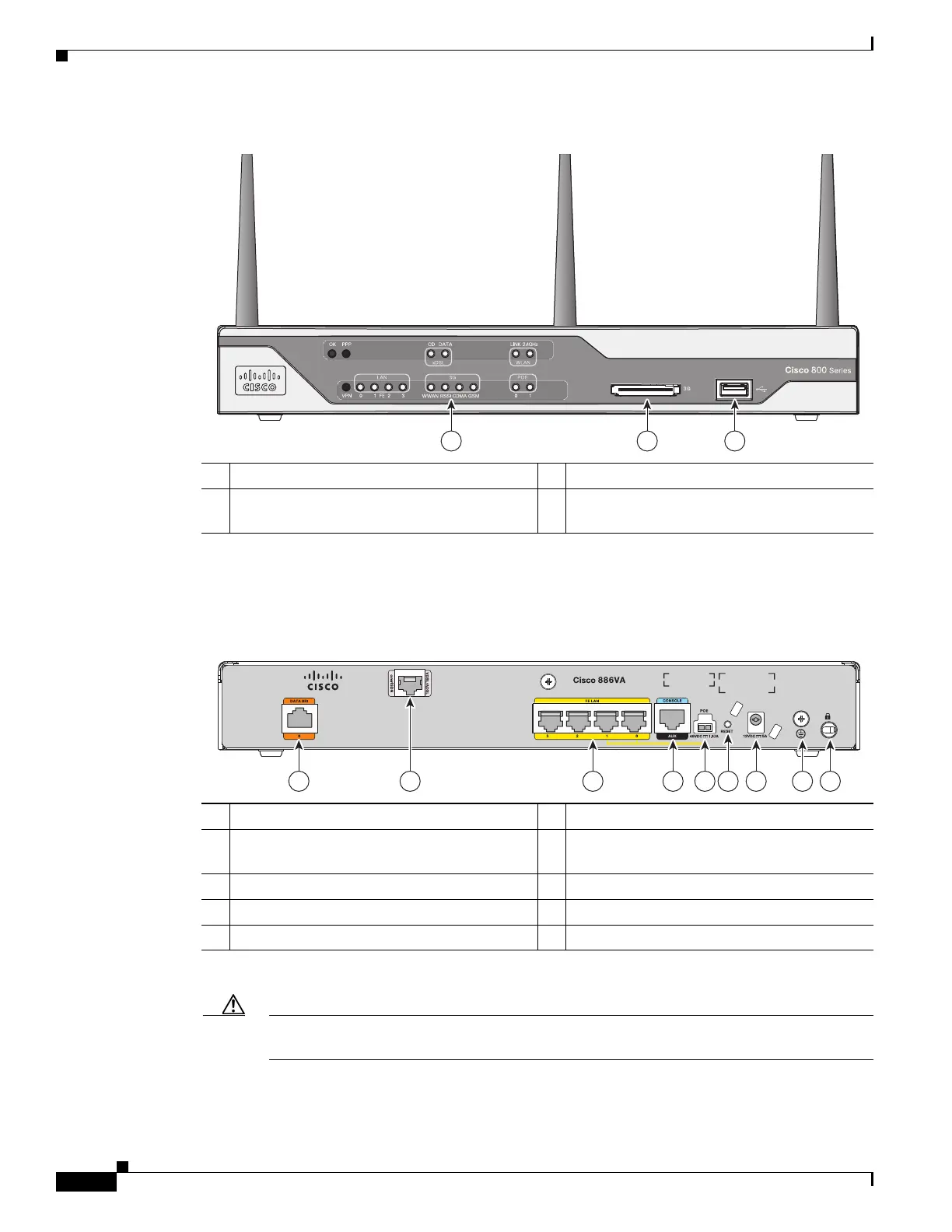 Caution The primary WAN port is designed for an RJ-45 connector only. Damage to the primary WAN