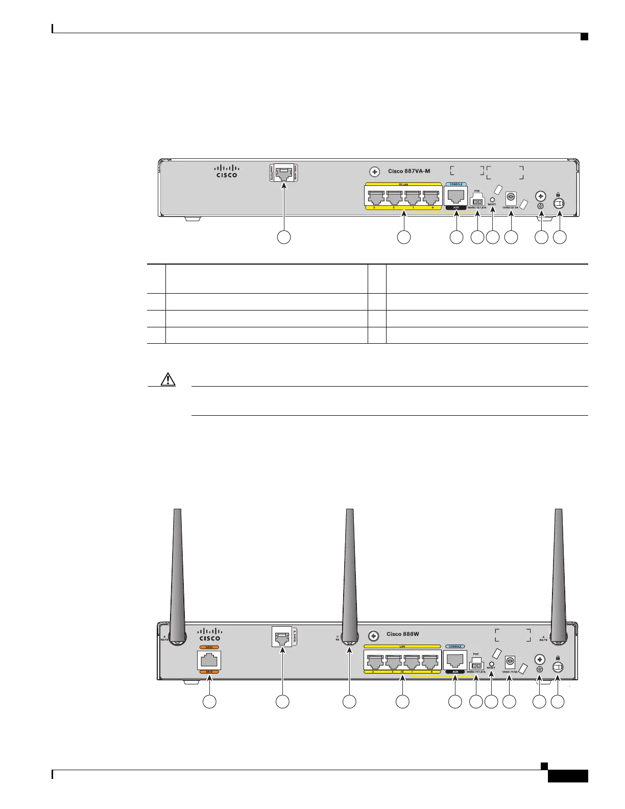 Caution For the Cisco 887VA, the primary WAN port is designed for an RJ-11 connector only. Damage