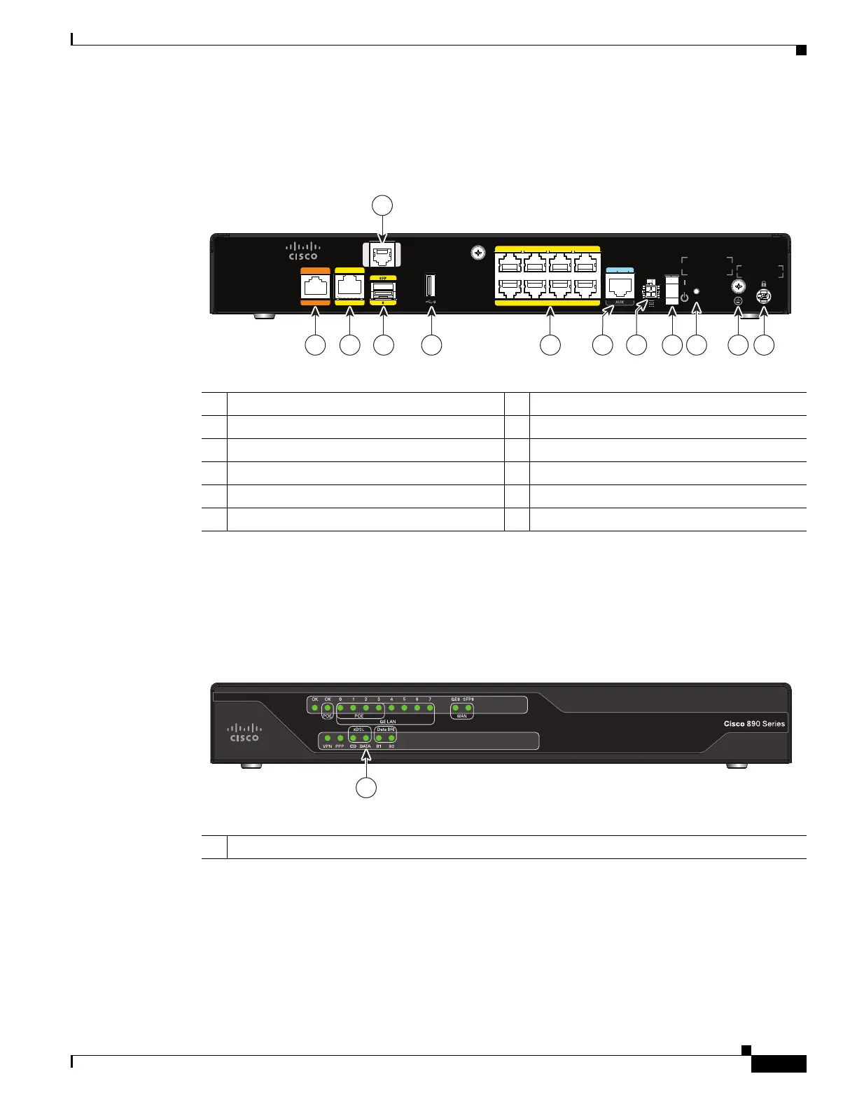 Figure 1-28 shows the front panel of the Cisco 896VA and the Cisco 897VA router.