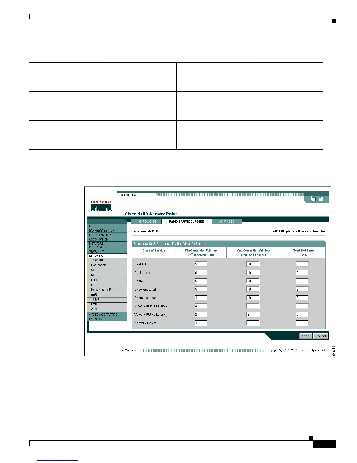 Table 13-1 Default QoS Radio Traffic Class Definitions