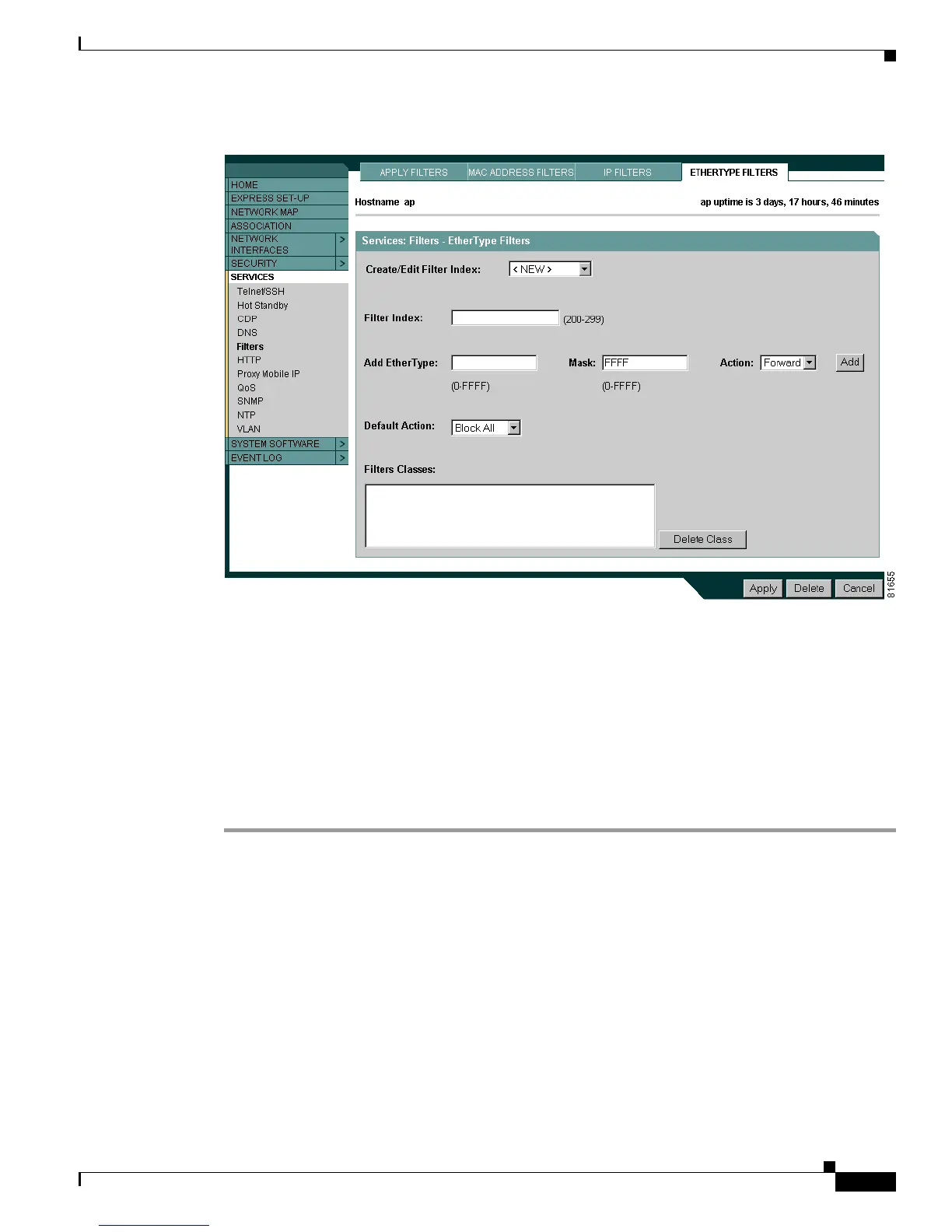 Classes list, select it and click Delete Class. Repeat Step 4 through Step 7 to add Ethertypes to the filter.