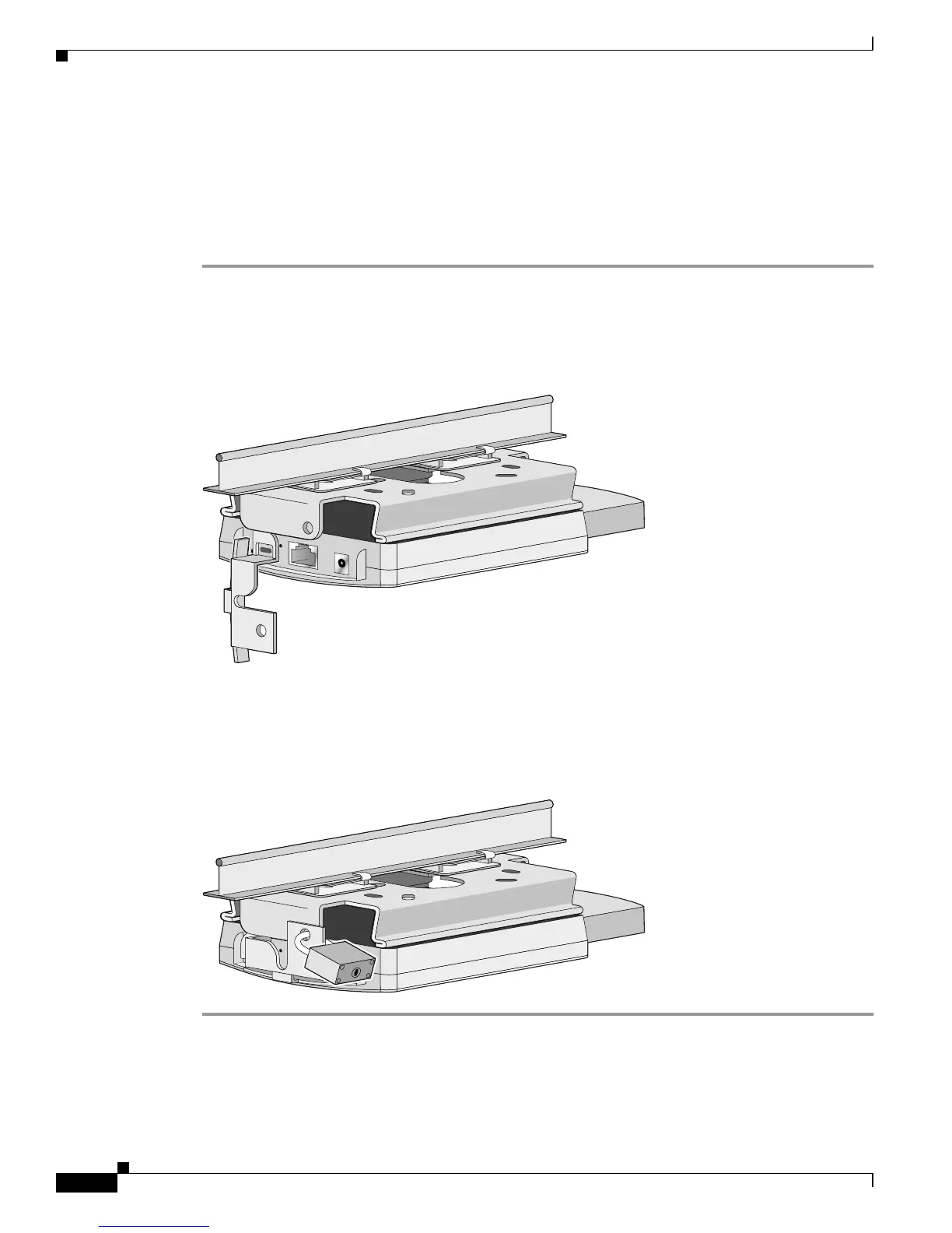 Step 2 Insert the T-shaped tab on the security hasp adapter into the Kensington lock slot on the access point.
