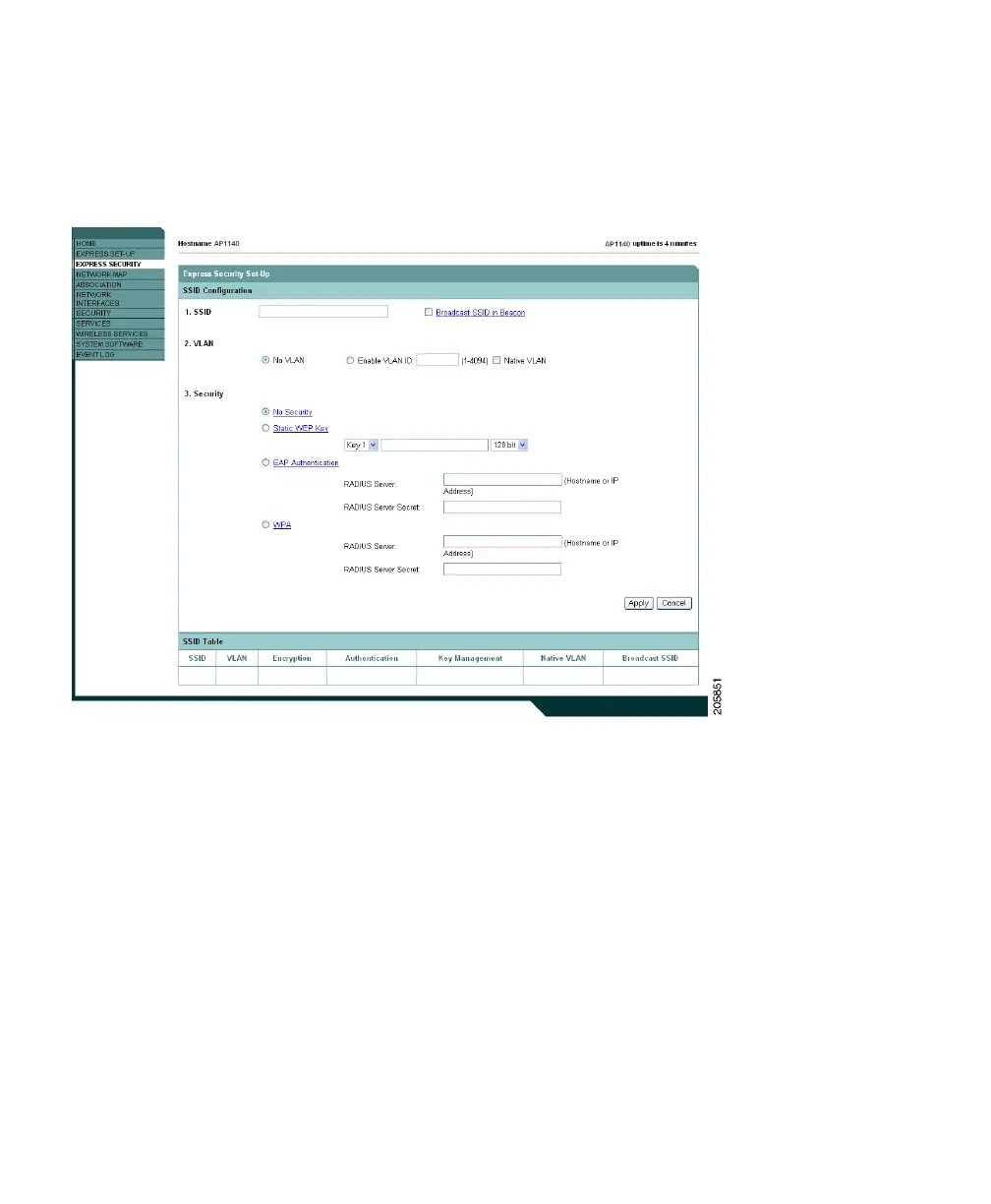 You can use the Express Security page to create unique SSIDs and assign one of four security types to