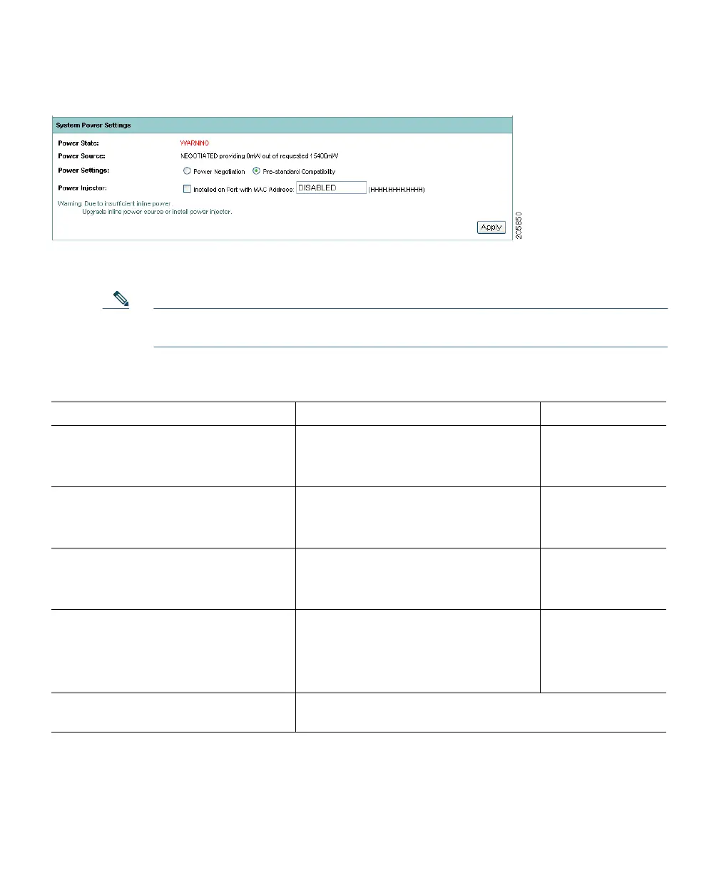 Step 5 Set the power settings and power injector fields, and verify your switch status as shown in