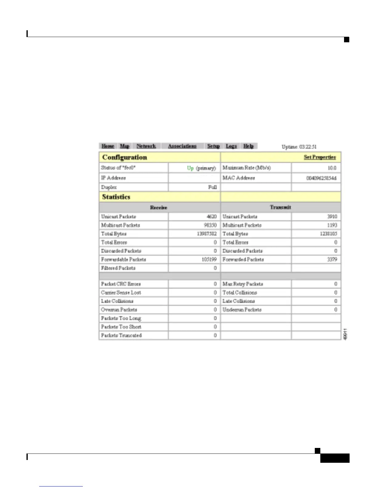 Ethernet Port page. This page lists detailed statistics on the access point’s