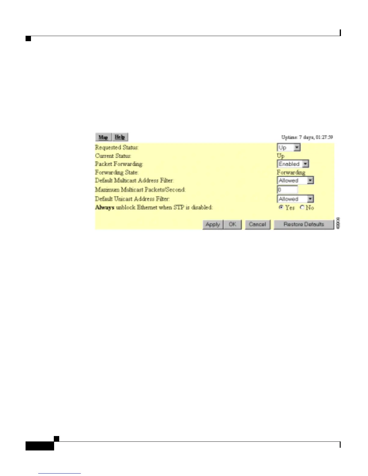 default setting, enables the Ethernet port for normal operation. Down disables the