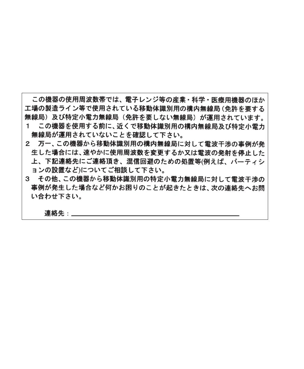 2. If this equipment causes RF interference to a premises radio station of RF-ID, promptly change