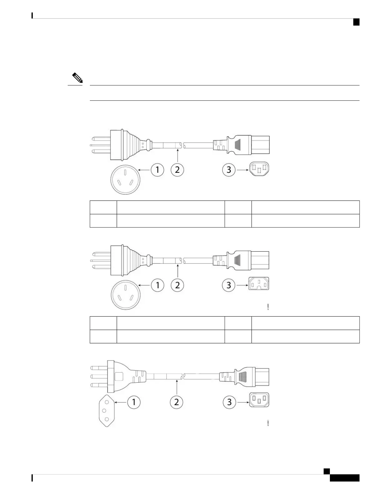 The following power cords and jumper cords are supported.