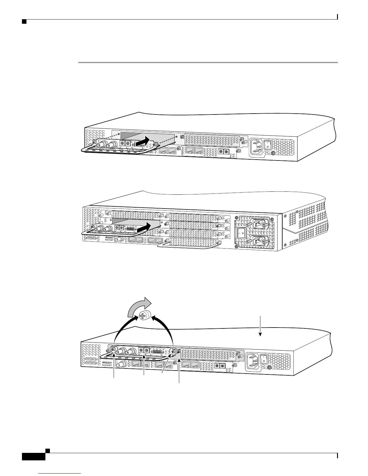 Step 4 Tighten the screws to secure the feature card to the chassis. (See Figure 4-11 and Figure 4-12.)