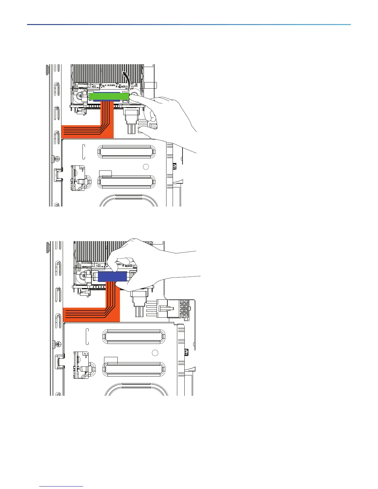 Caution: Keep hands clear of all electronics underneath the card cover.