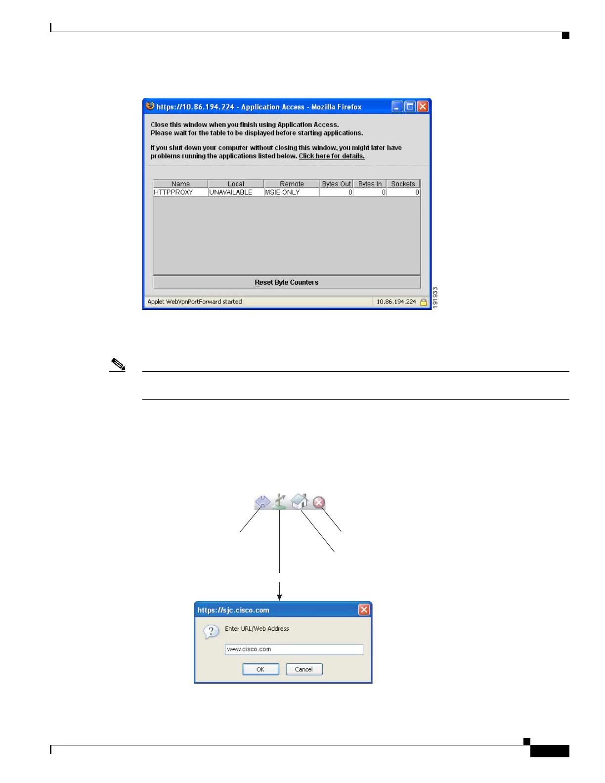 The floating toolbar shown in Figure 1-11 represents the current clientless SSL VPN session.