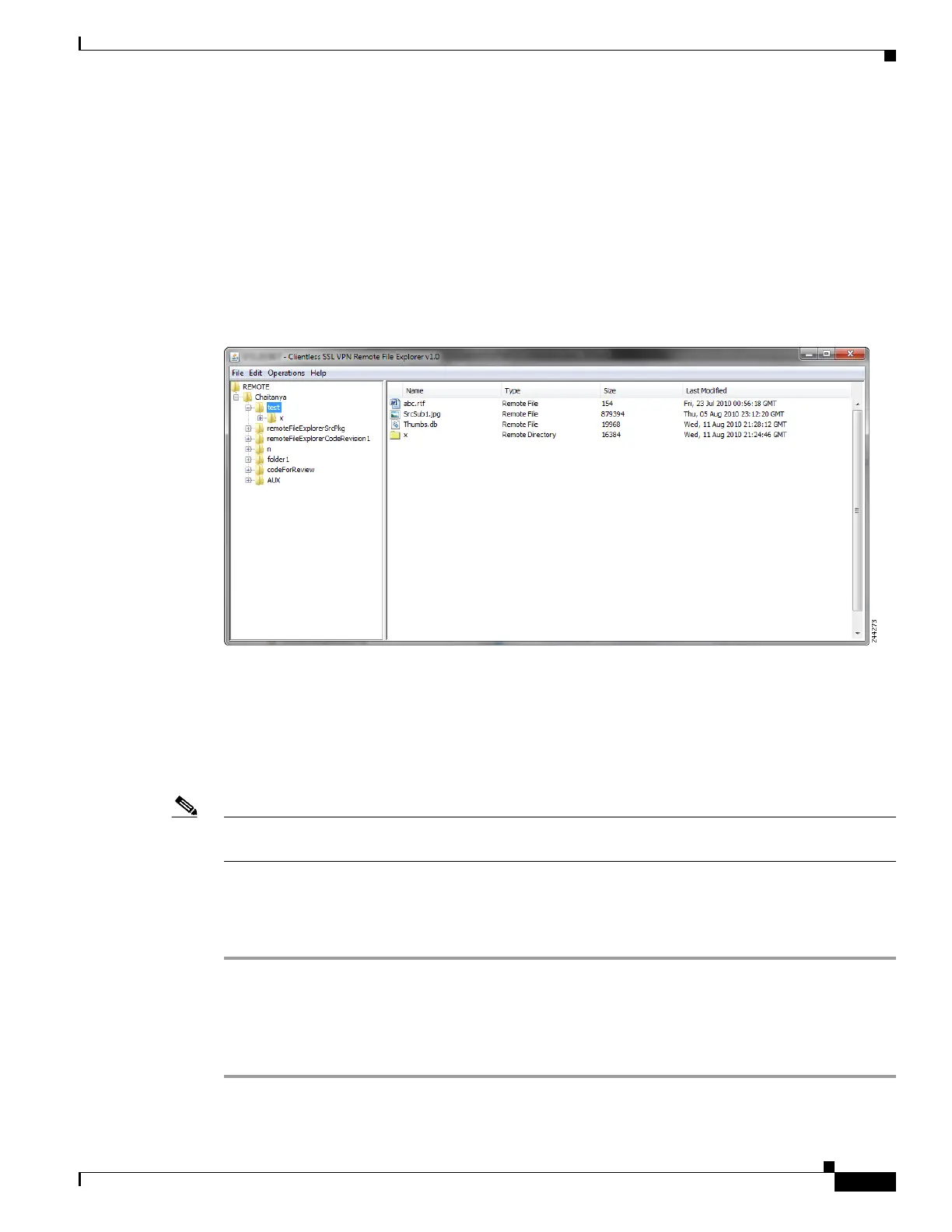 browser. When the users clicks the Remote File System icon on the Cisco SSL VPN portal page, an
