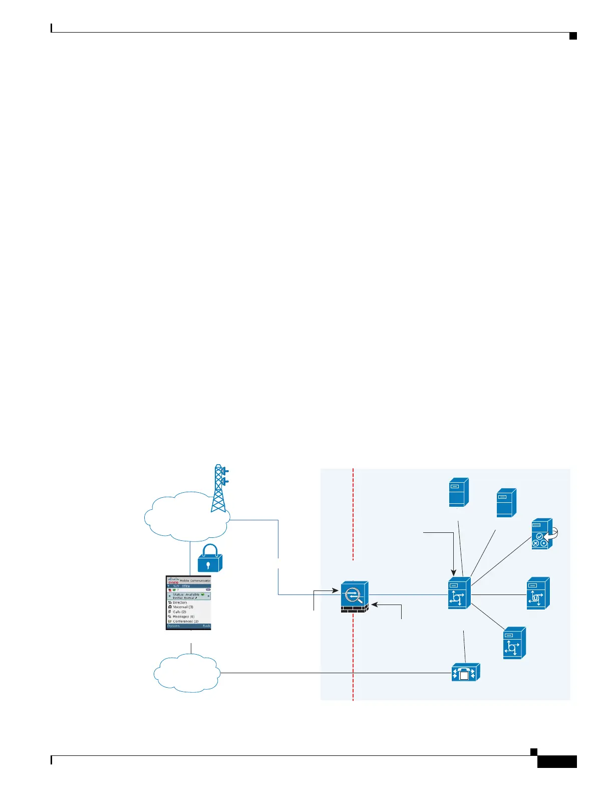 firewall and TLS proxy. In the scenario 1 deployment, the ASA is between a Cisco UMA client and a