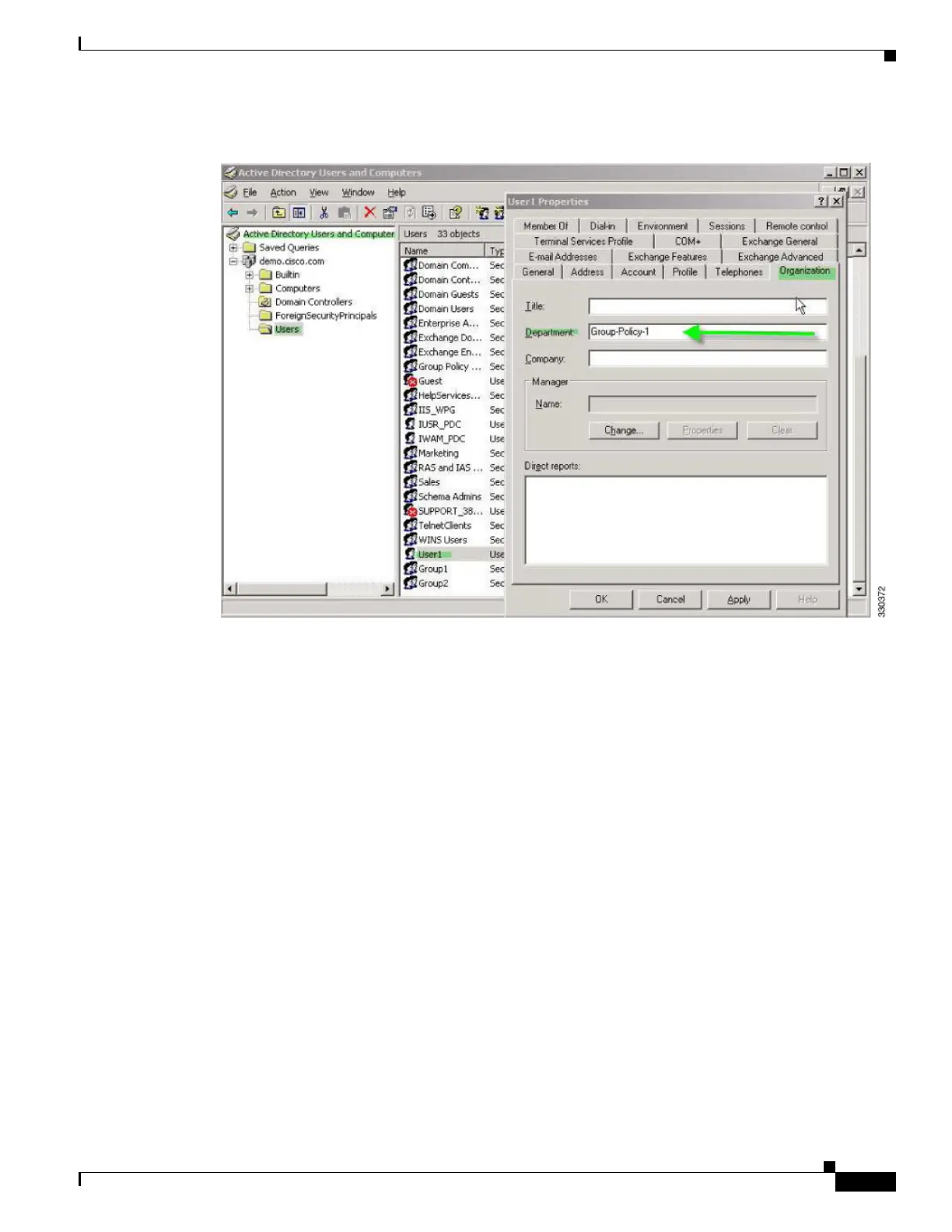 to the user. The following example creates Group-policy-1, the name entered in the Department field on