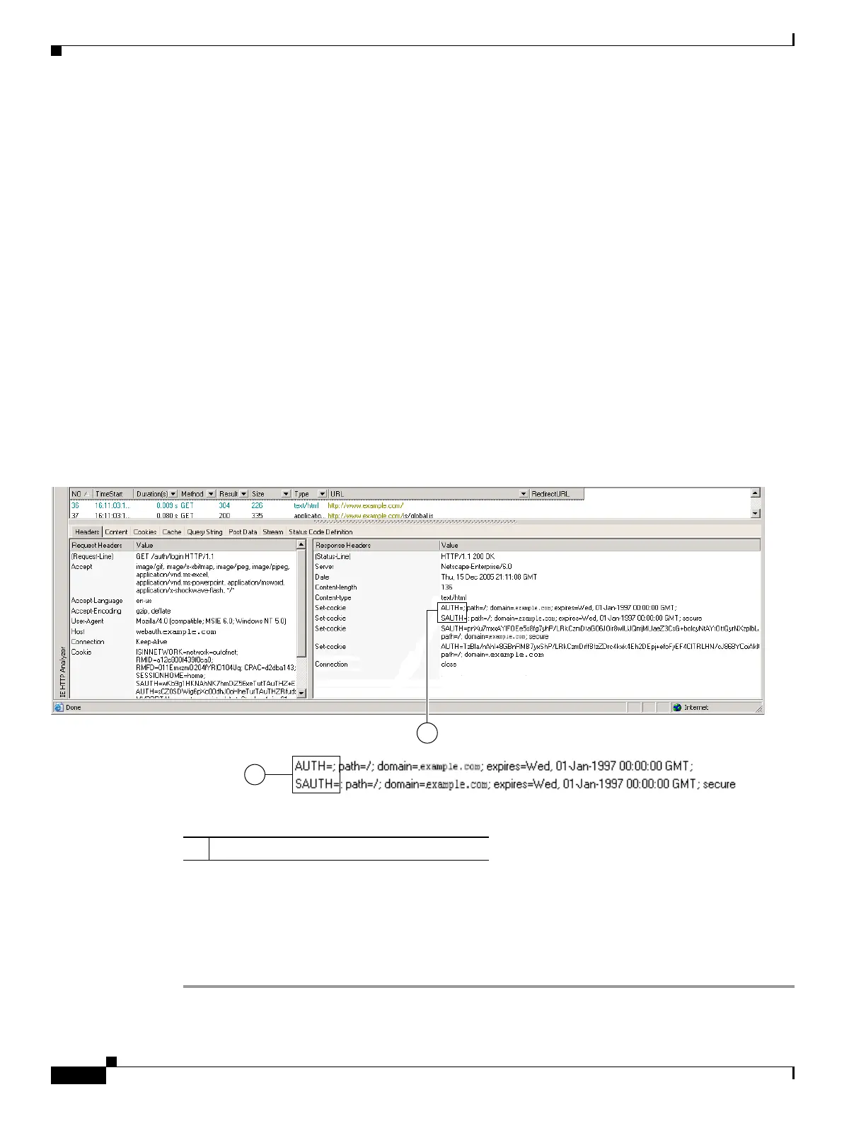 Figure 1-6 shows an example of authorization cookies in HTTP analyzer output. This is only an example;