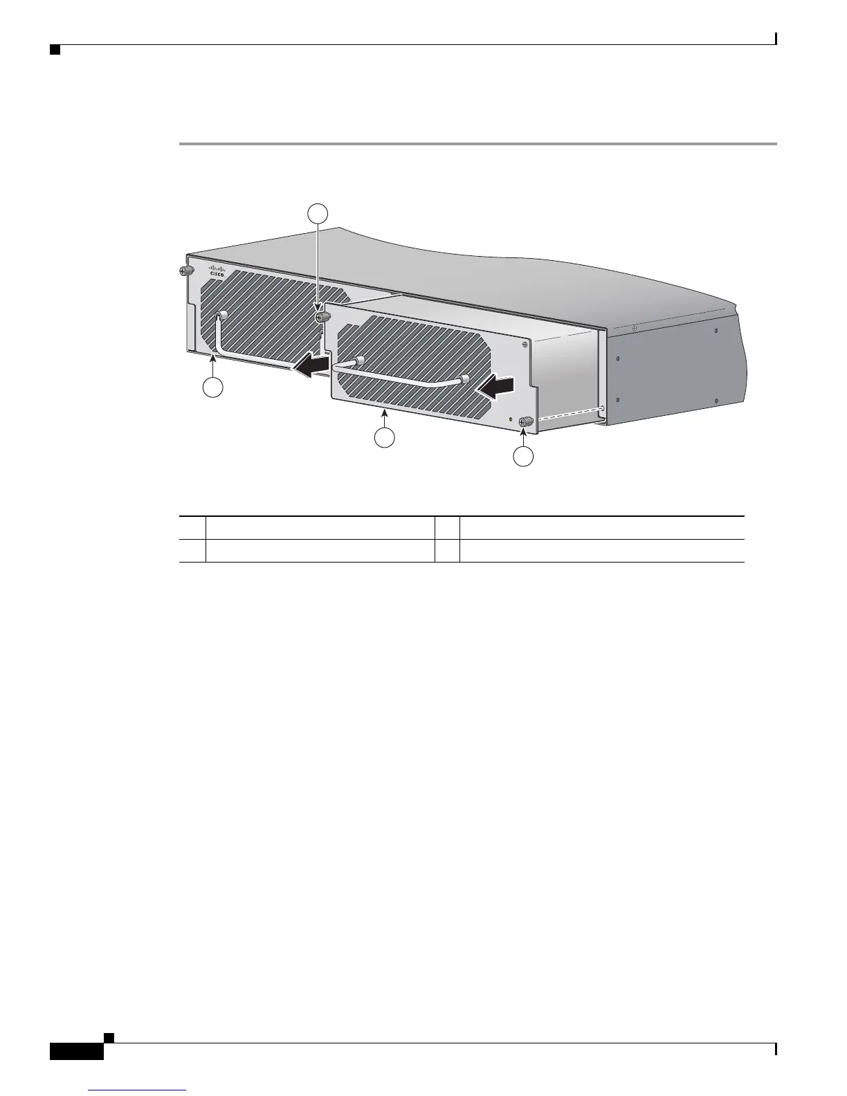 Step 1 From the right-hand side of the back panel of the ASA 5585-X loosen the captive fan-module screws