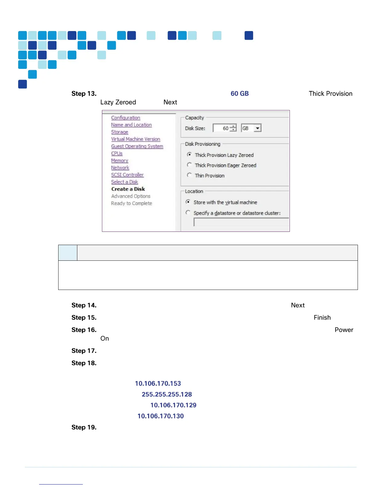 On the Create a Disk page, select Disk Size as , Disk Provisioning as