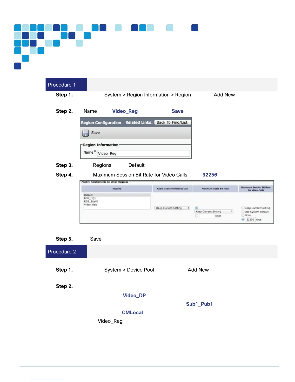 Configure device pool for video and add the video region