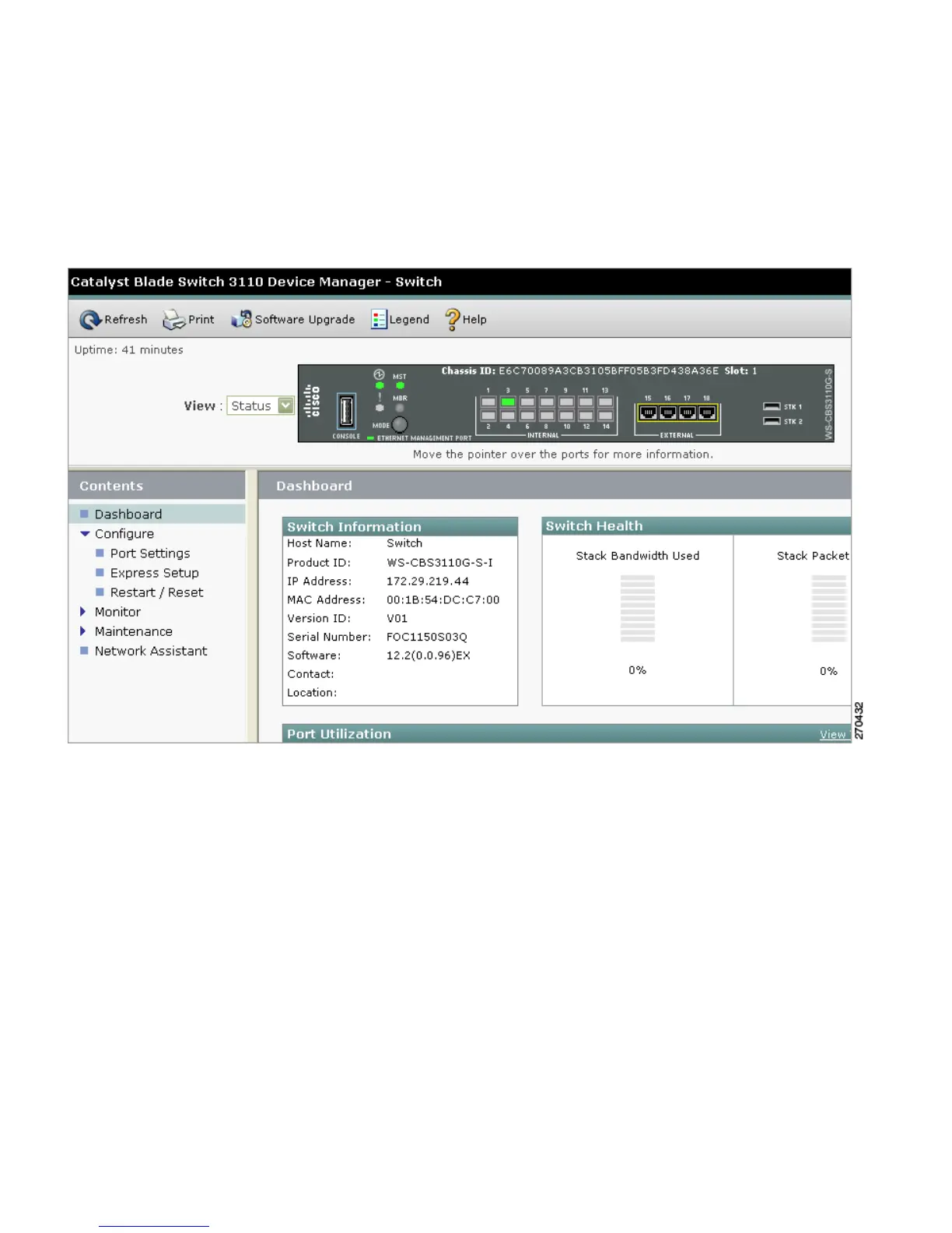 Step 2 The switch module device manager page appears (Figure 8). If it does not appear, see the “In