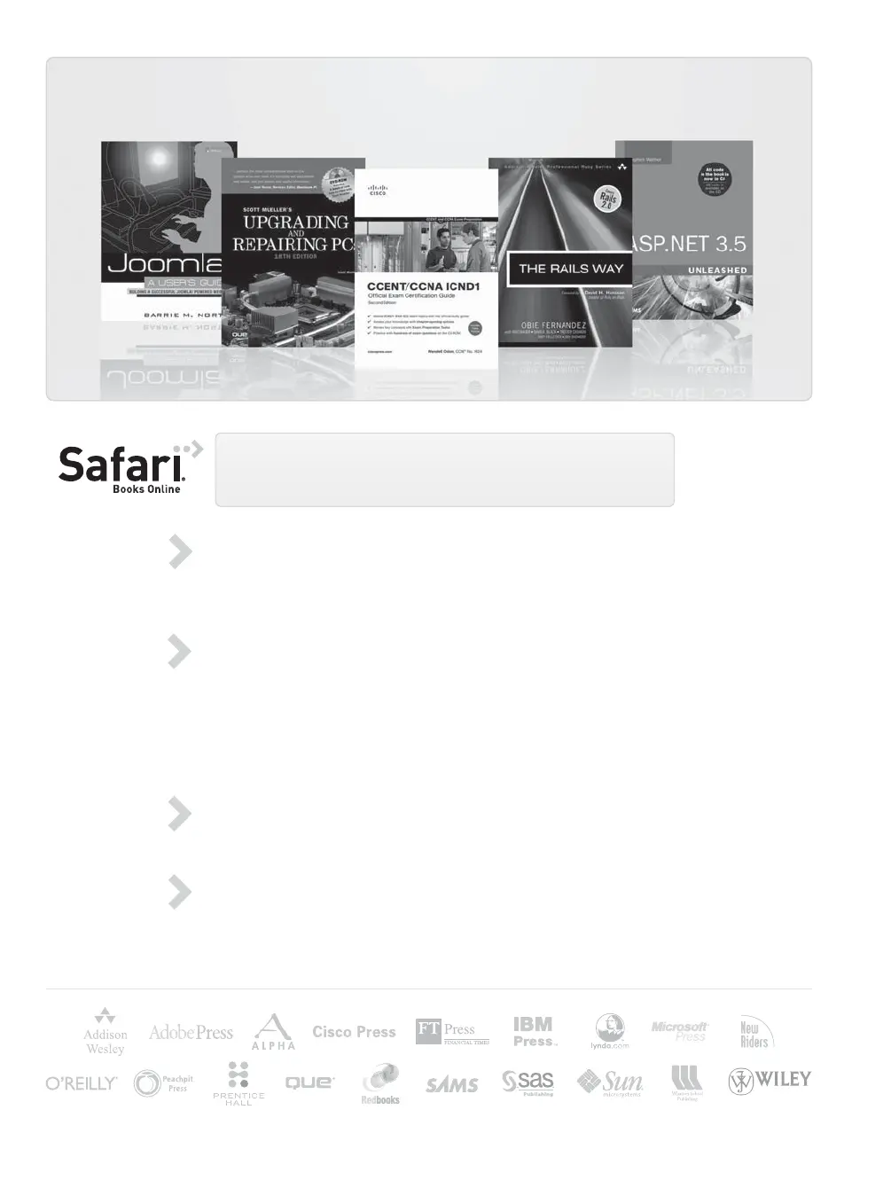 technology publishers, including Addison-Wesley Professional, Cisco Press,