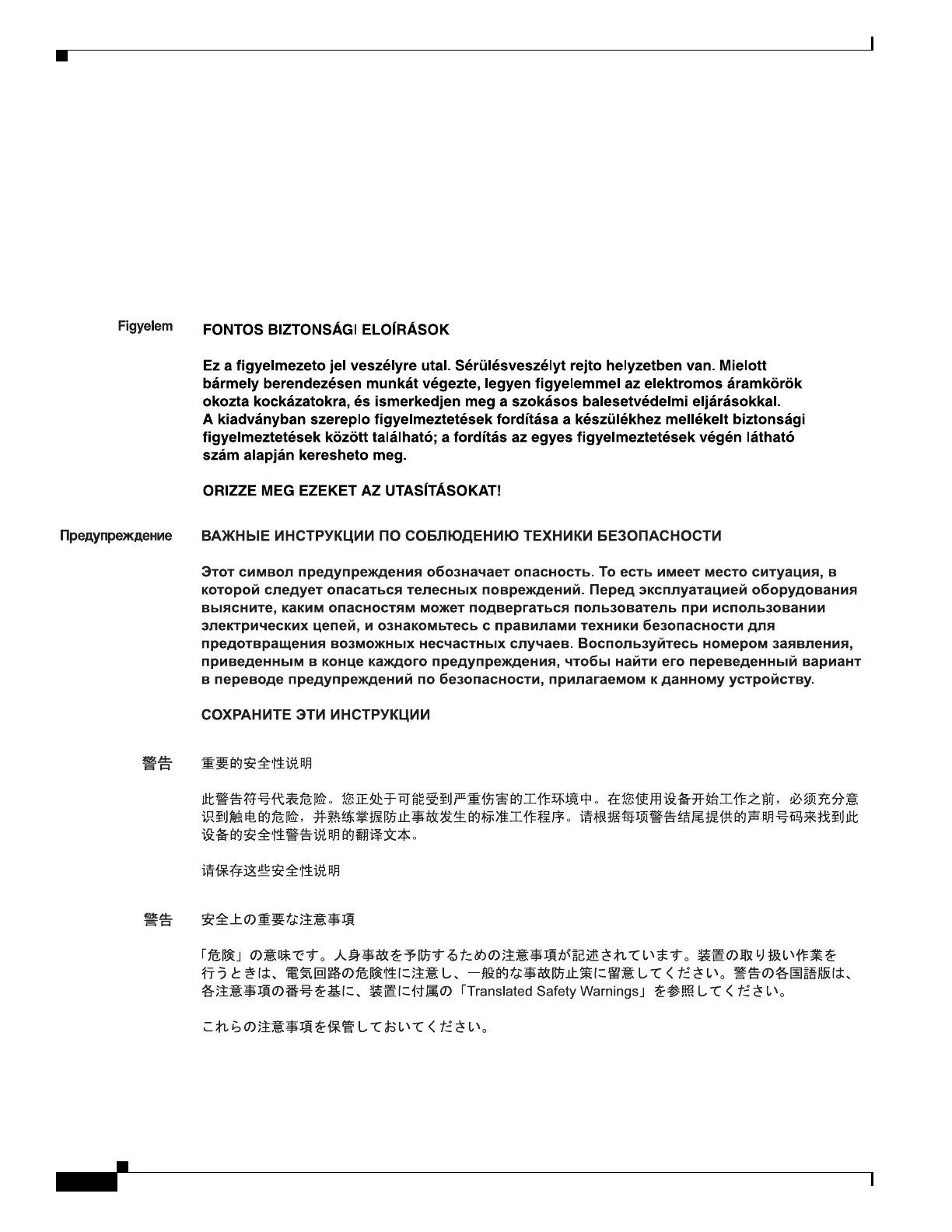 varje varning för att hitta dess översättning i de översatta säkerhetsvarningar som medföljer denna