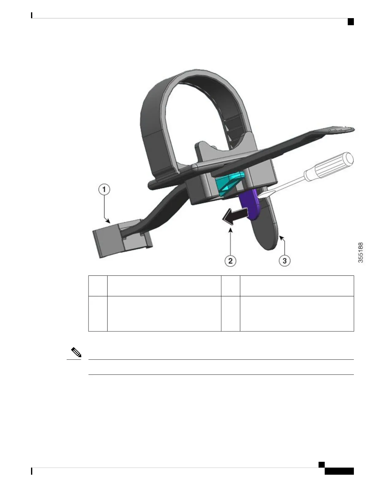 The following figure shows how the flexible retainer strip inserts into the clamp hole.