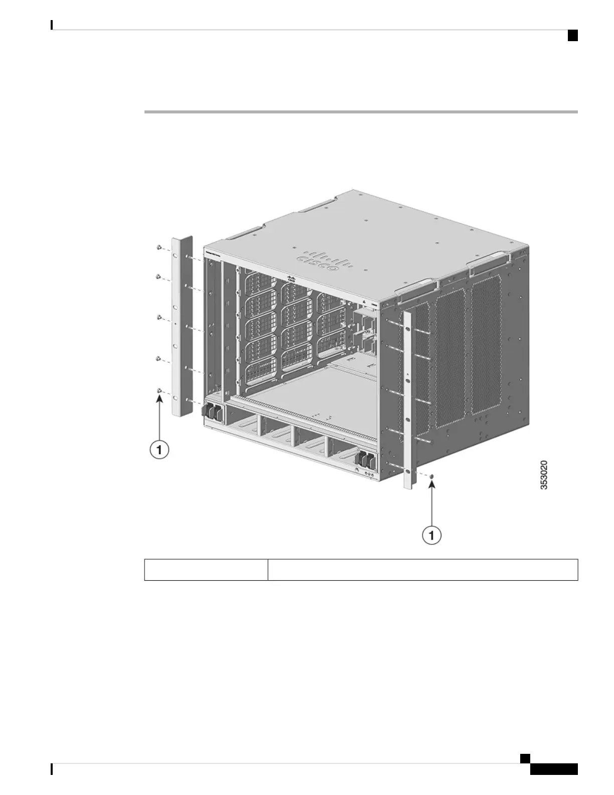 Step 1 Remove and discard the mounting ears and the ten mounting screws of the chassis. Do not reuse them during