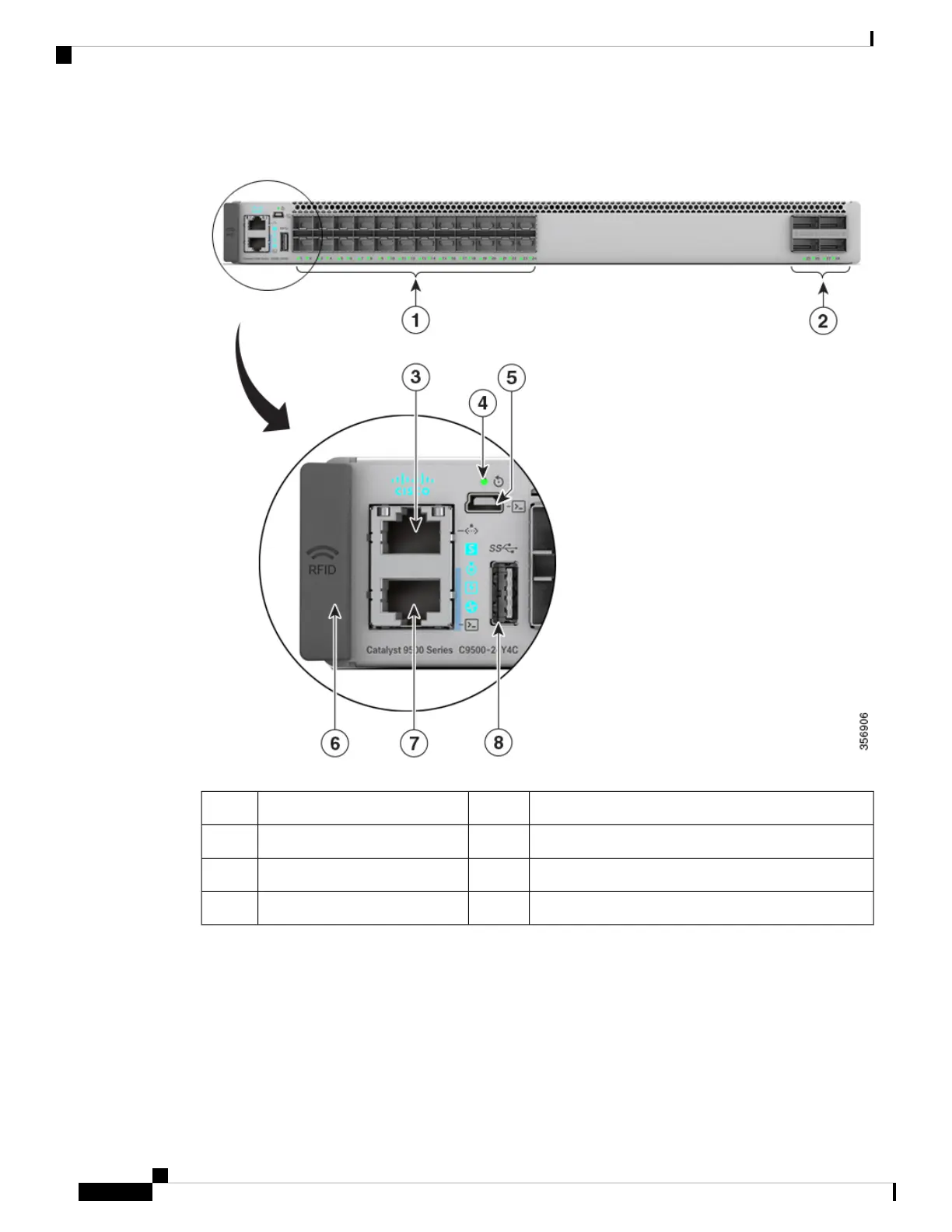 Figure 4: Front Panel of a 24-Port Cisco Catalyst 9500 High Performance Switch (C9500-24Y4C)