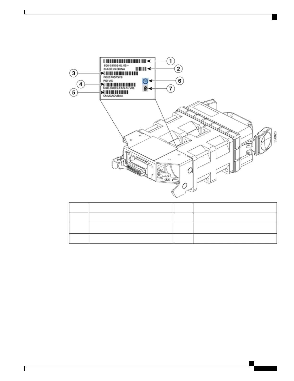 Figure 61: Fan Module Serial Number on Cisco Catalyst 9500 High Performance C9500-32QC, C9500-48Y4C and C9500-24Y4C Switch