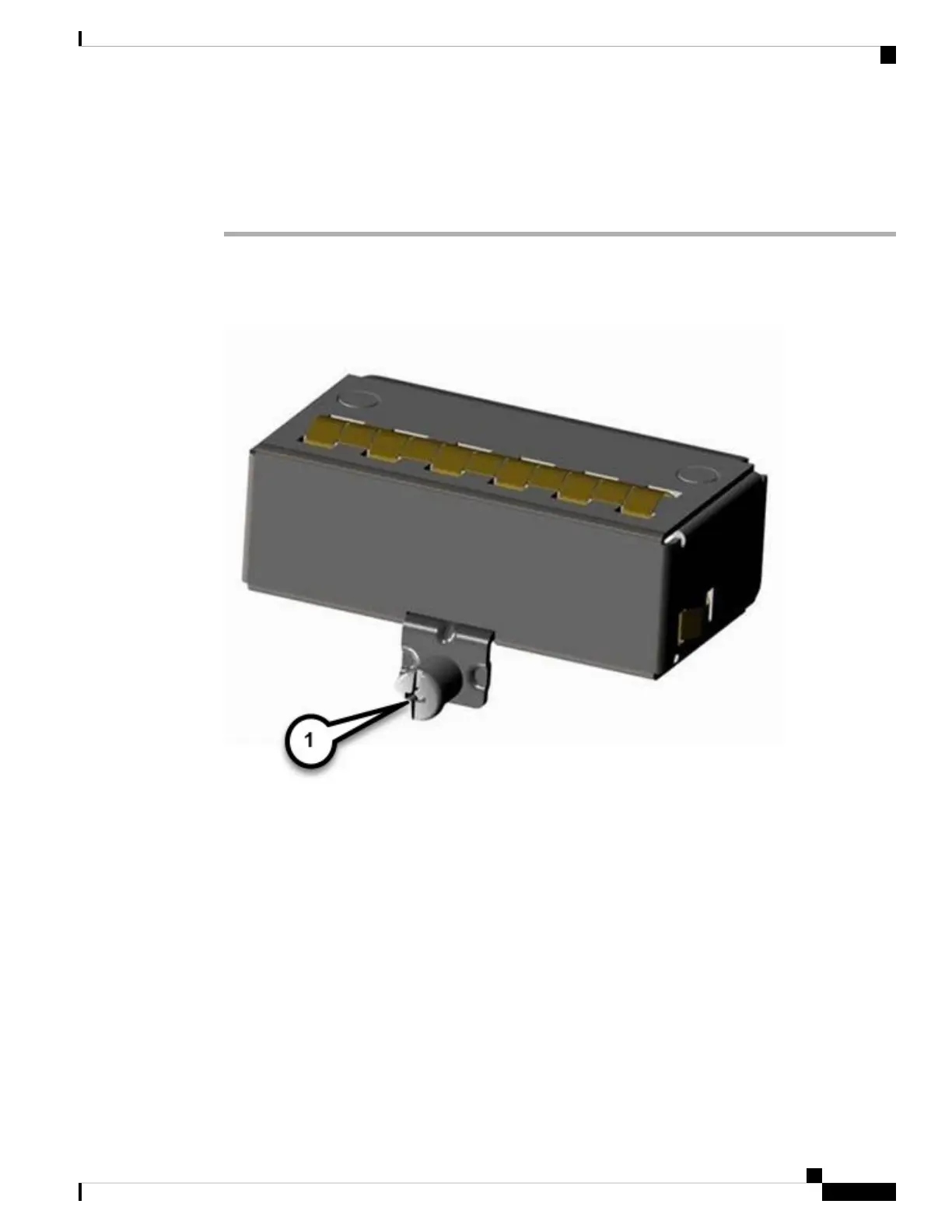 Step 1 Remove the blank plate by unscrewing the latch lock screw(1) that holds the plate secure. Refer to the following