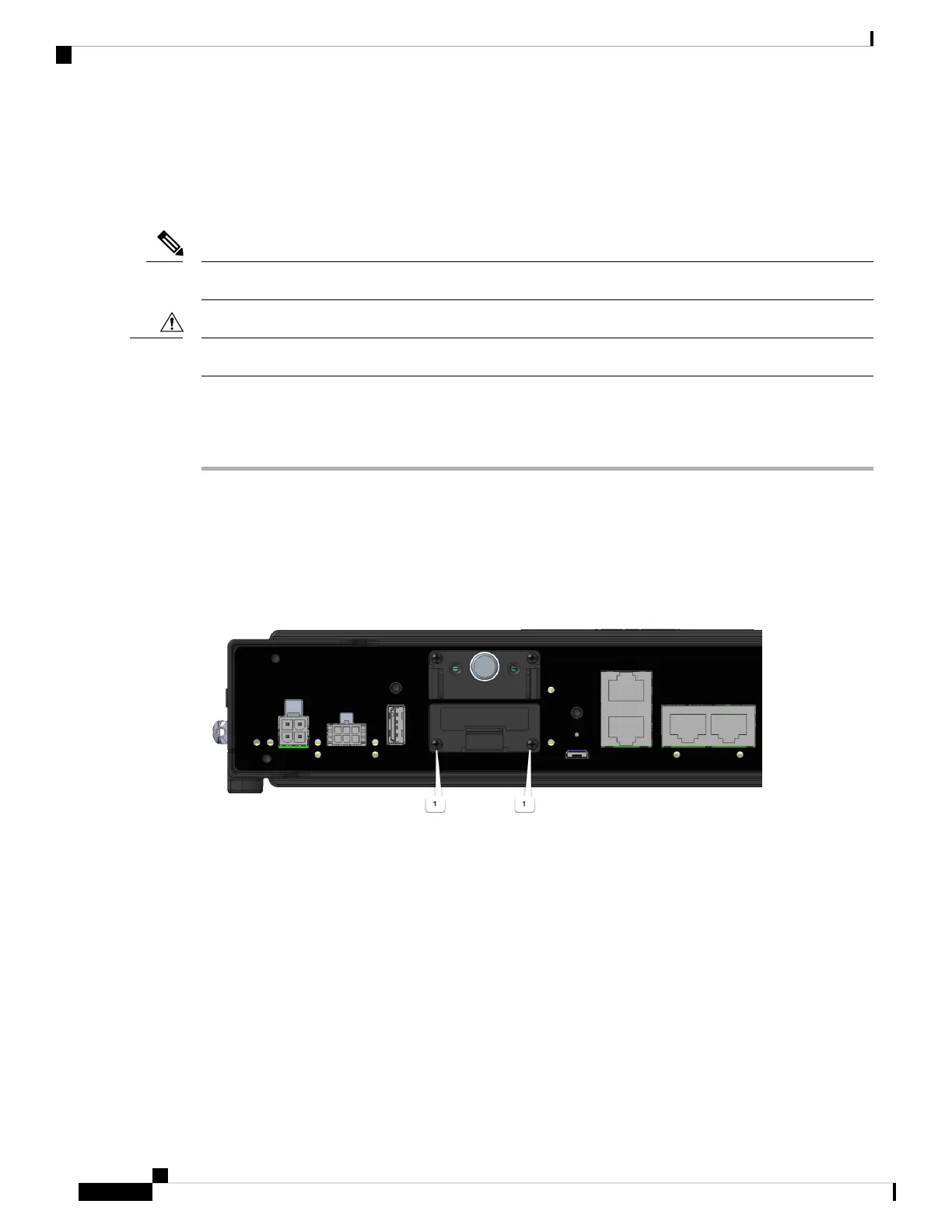 Step 2 Insert the SSD module into the slot on the panel so the previously removed screws (1) align with the screw