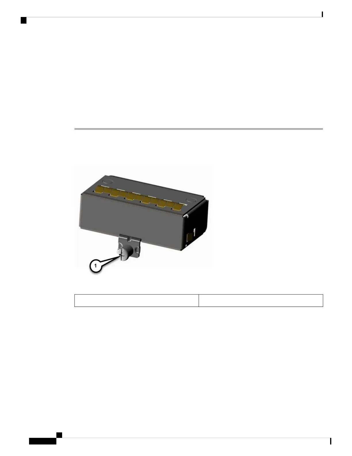 Step 1 Remove the blank plate by unscrewing the latch lock screw(1) that holds the plate secure. Refer to the following