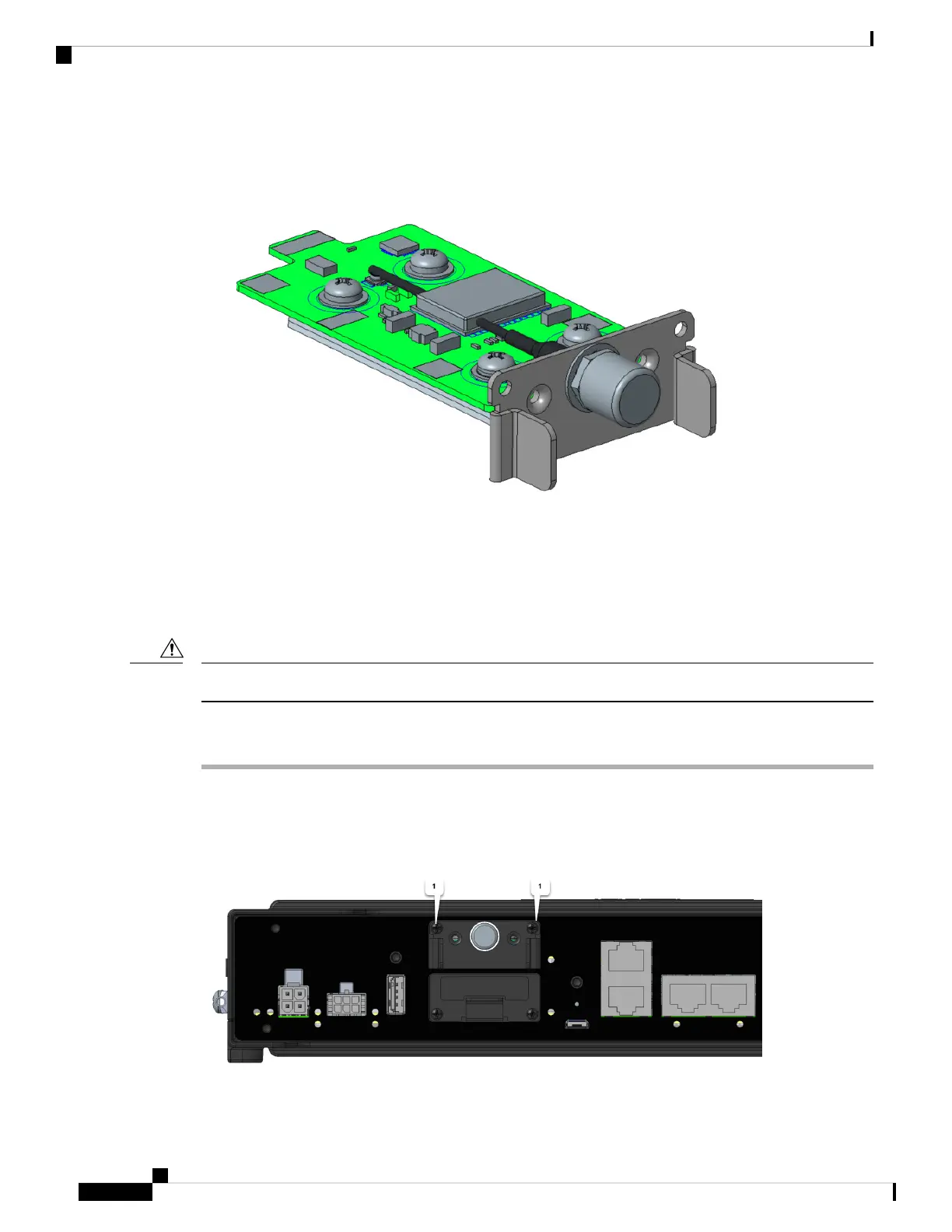 Step 1 Remove the protective cover over the GNSS slot by removing the two screws (1) using a Phillips driver, as