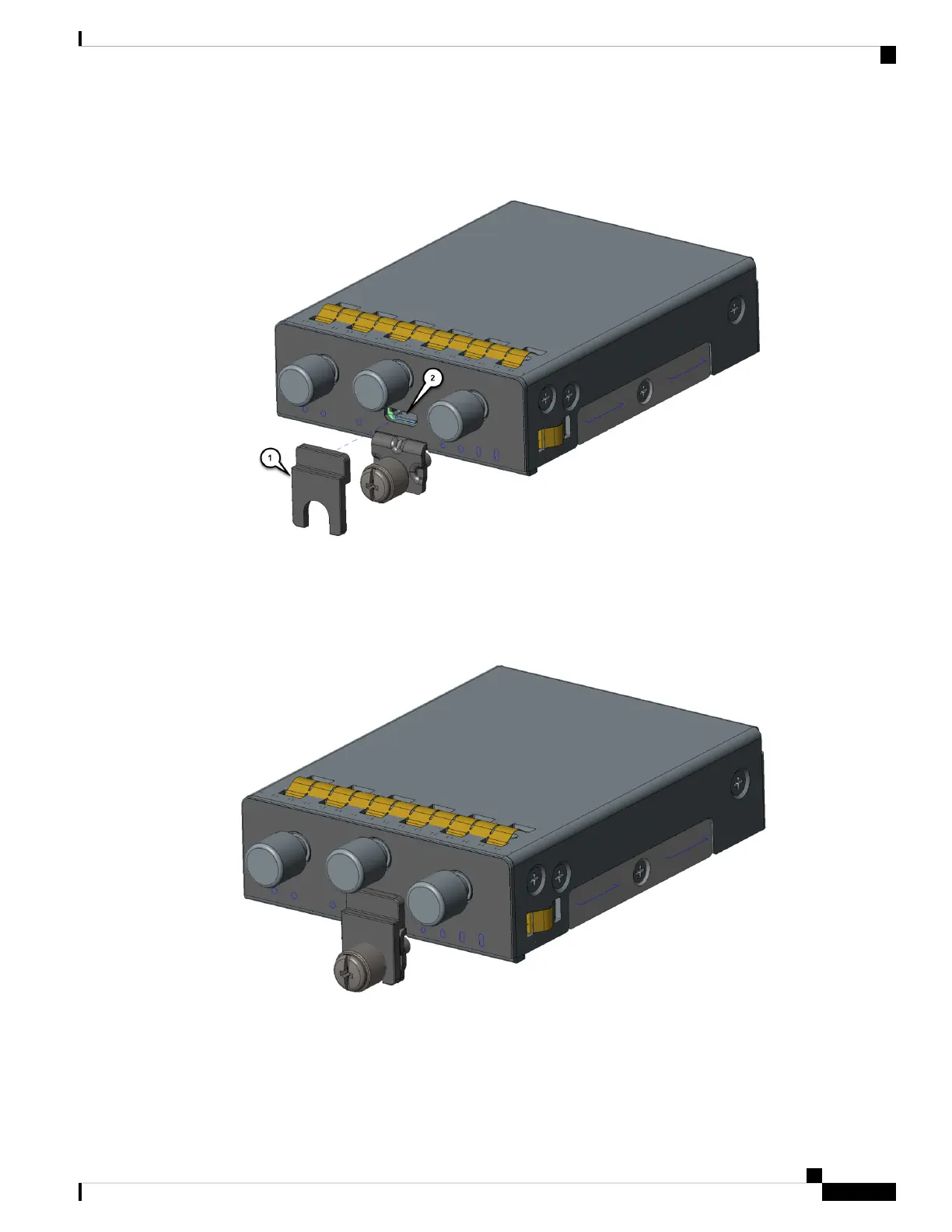 with the screw hole (2) on the face of the device. Push the pluggable module all the way into the device until