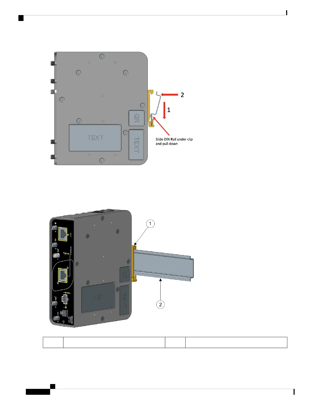 Step 2 Push up on the AP so that the spring of the DIN clip compresses against the lower section of DIN rail, and then rotate