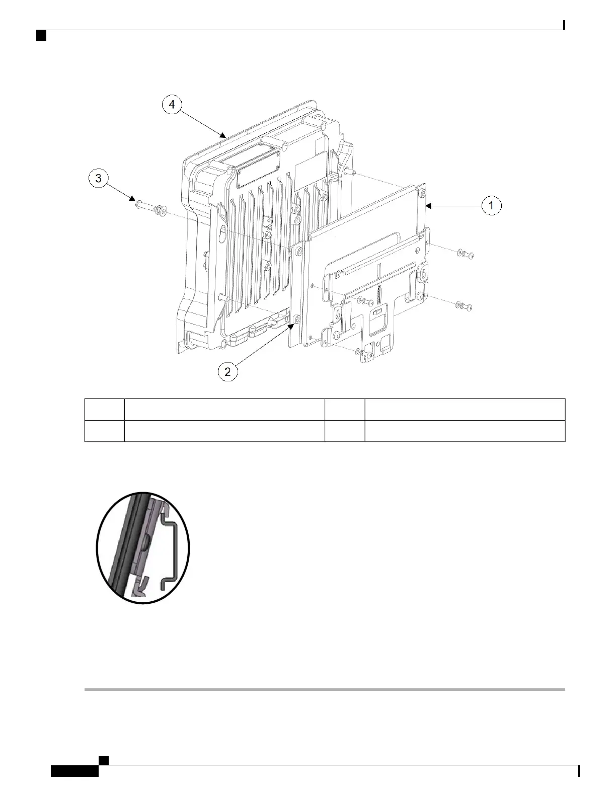 Step 3 Insert the DIN rail mounting bracket under the spring-loaded upper mounting clips.