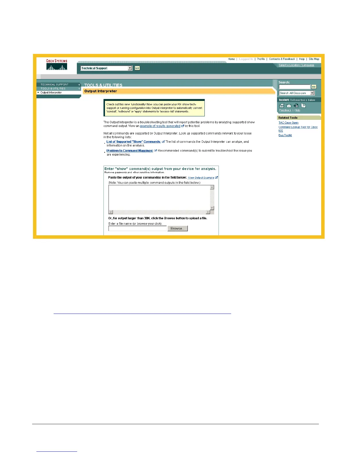 Output Interpreter is a Web-based application that provides a troubleshooting analysis and a