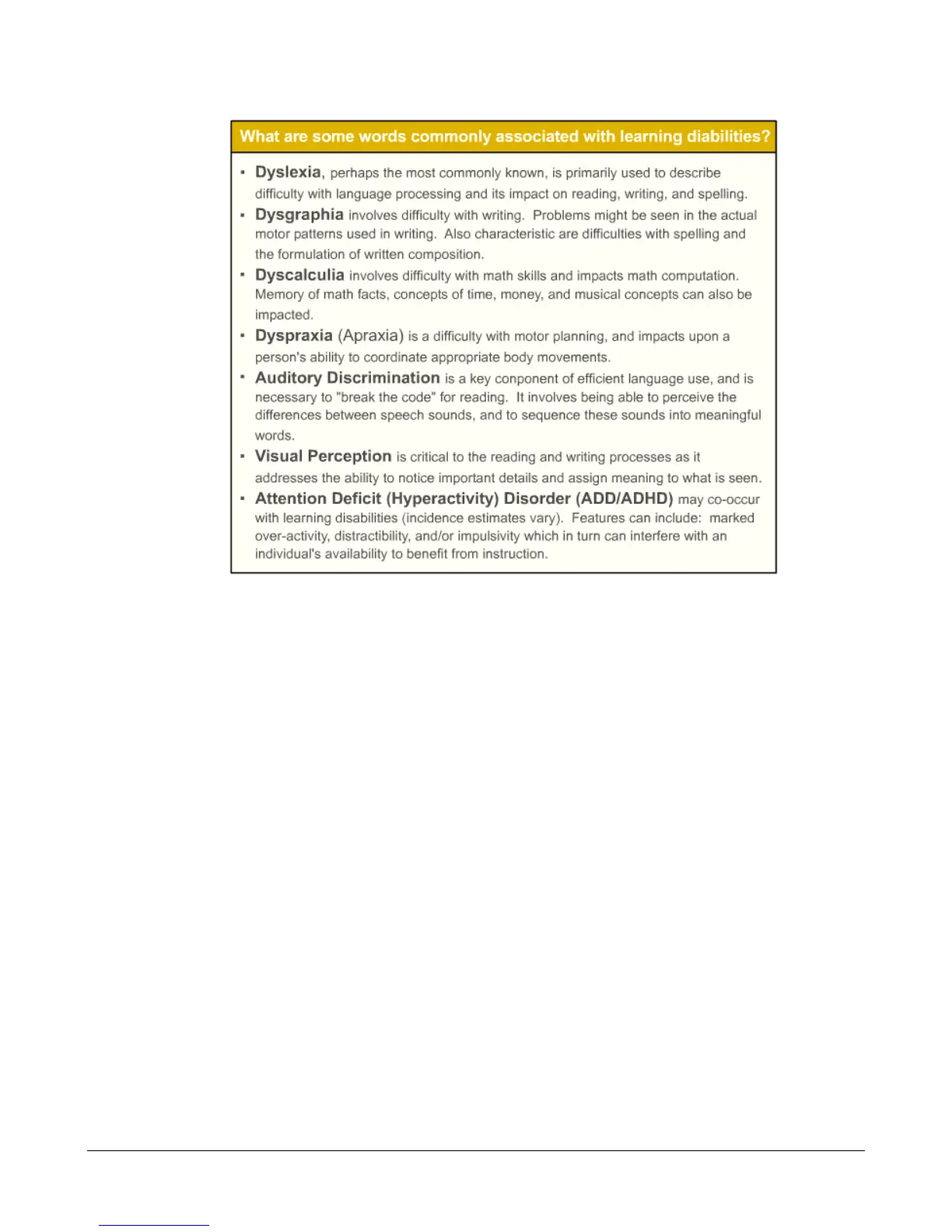 Instructors will probably have a few students with learning disabilities in their classes. The