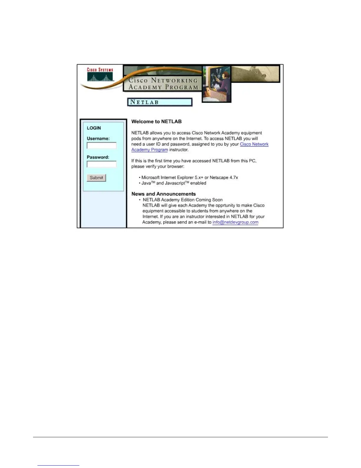 The use of NETLAB in the Cisco Networking Academy will allow students to log in, create, and