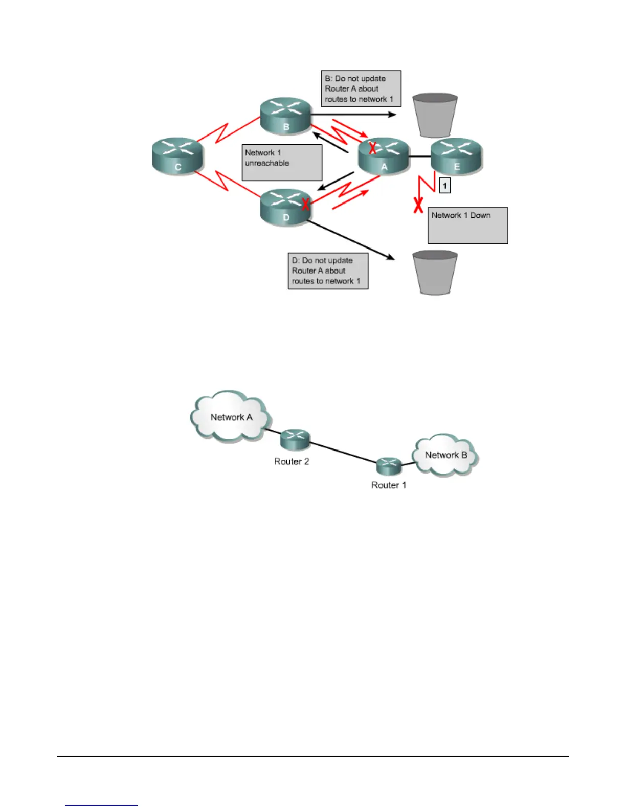 the status of Network A, it cannot receive a report back from Router 1 about Network A.