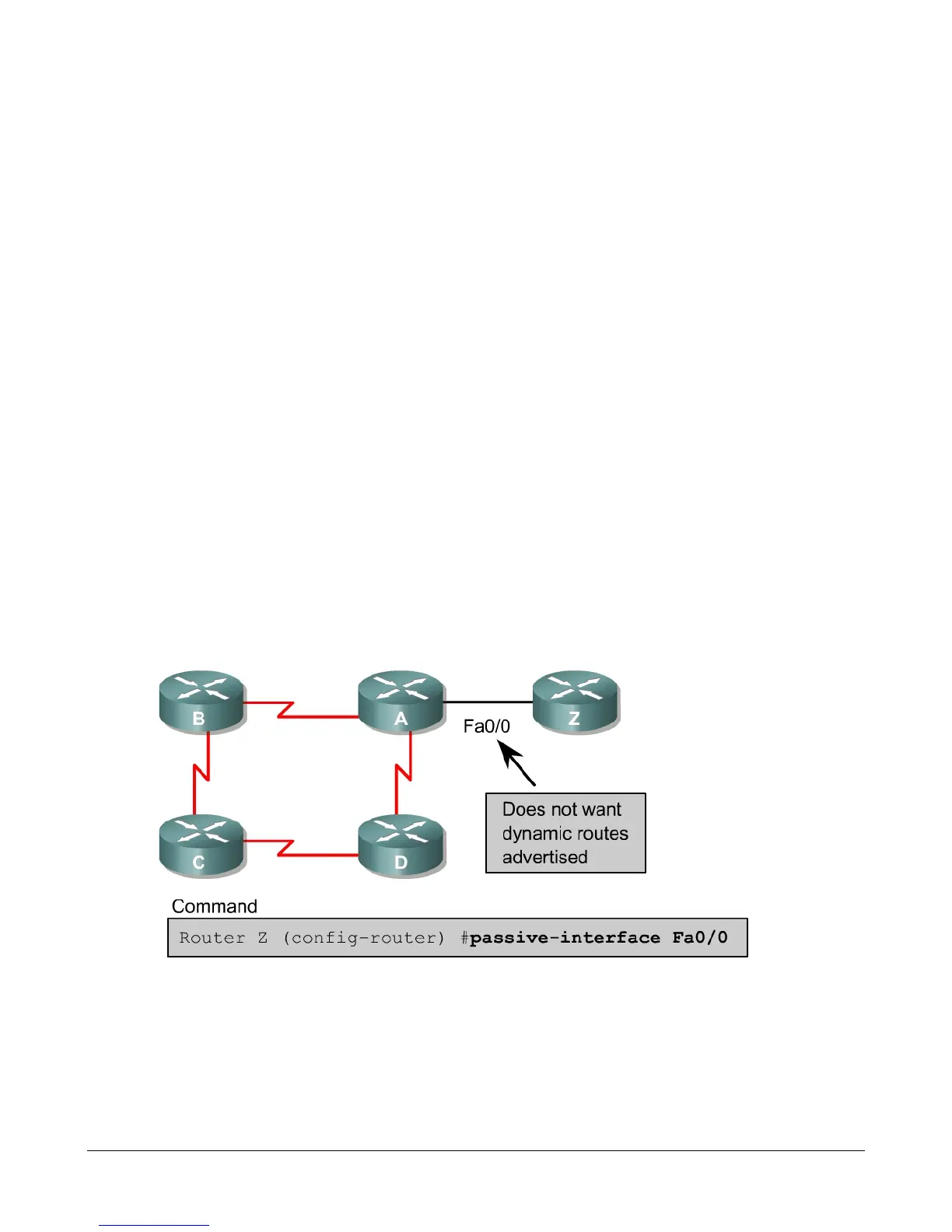 particular interface. In the graphic, Router Z interface Fa0/0 is not allowed to send router