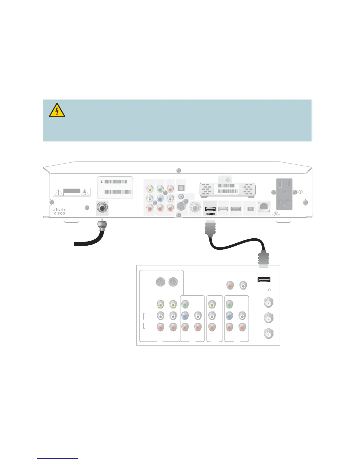 Electric shock hazard! Unplug all electronic devices before connecting or