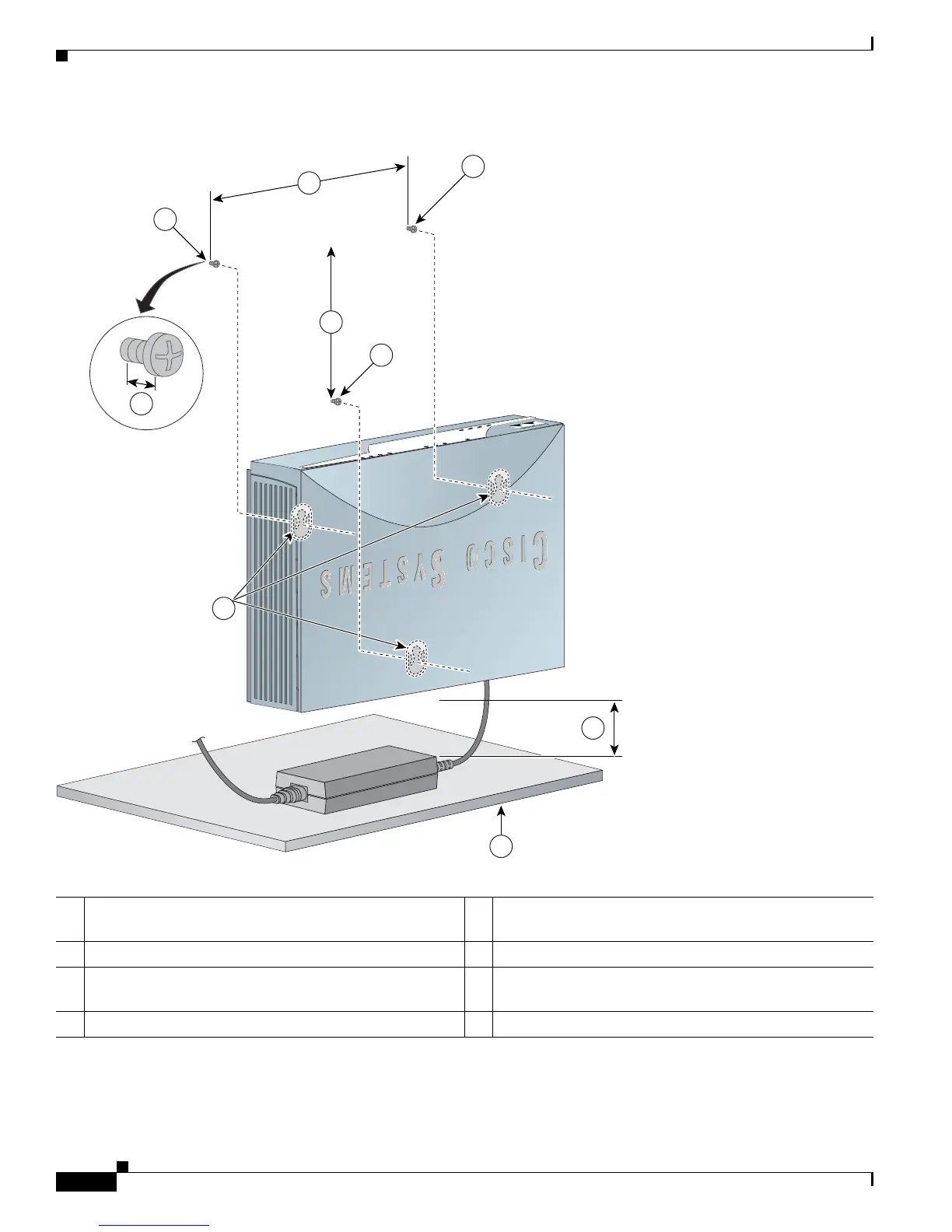 2 Distance between the top set of screws on the wall 6 Horizontal surface on which to place the power adapter