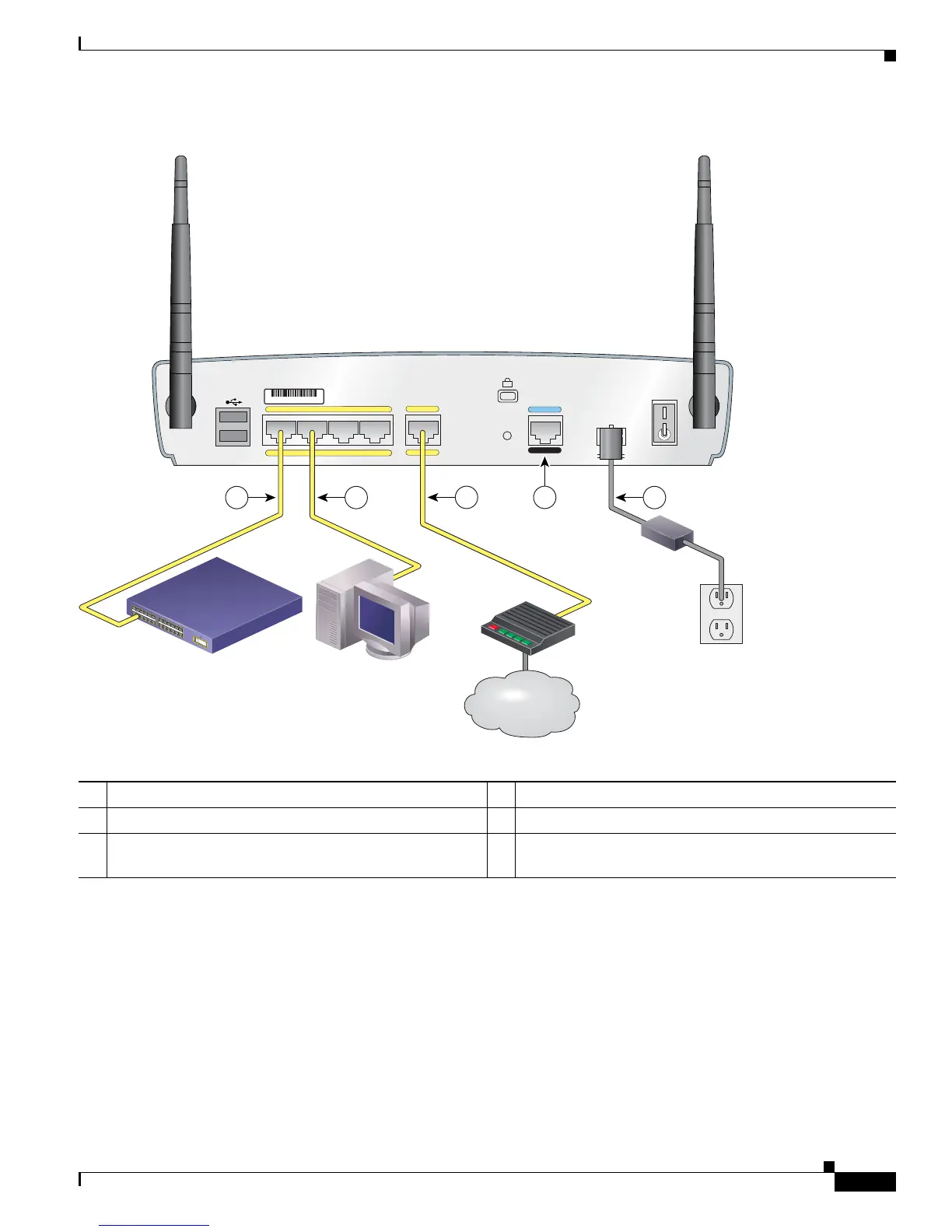 2 Ethernet connection to a PC 5 Power adapter